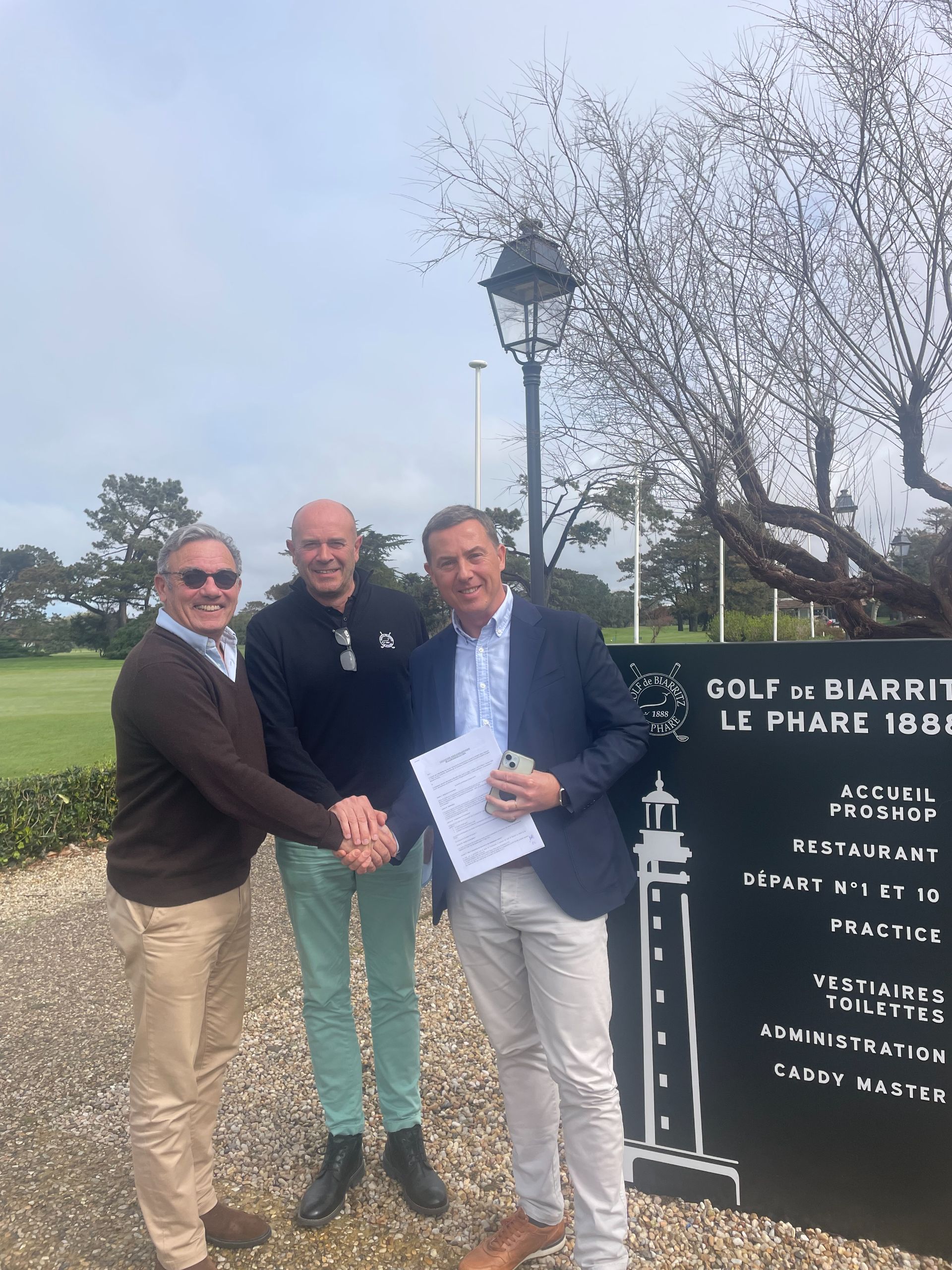 Edouard CHAZOUILLERES, président de la société des Golfs de Biarritz et Philippe SABARROS, président de l'Association Sportive des Golfs de Biarritz sont heureux de vous annoncer la signature de la convention qui liera désormais les deux structures dans le cadre de leur étroite collaboration pour le développement sur le Golf de Biarritz le Phare et le Centre Internationnal d'Entrainement au Golf d'Ilbarritz.