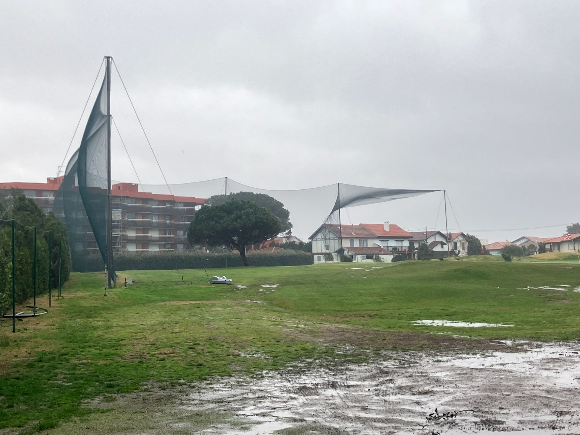 Le practice a subi également quelques dommages, poteaux pliés et filets arrachés. Les abris sont à ce jour inutilisables mais le centre de petit jeu est quant à lui complètement opérationnel. Nous avons sollicité nos assureurs et prestataires afin qu’ils procèdent aux réparations et qu’ils trouvent une solution empêchant ces désagréments dus à ces phénomènes climatiques de plus en plus fréquents.