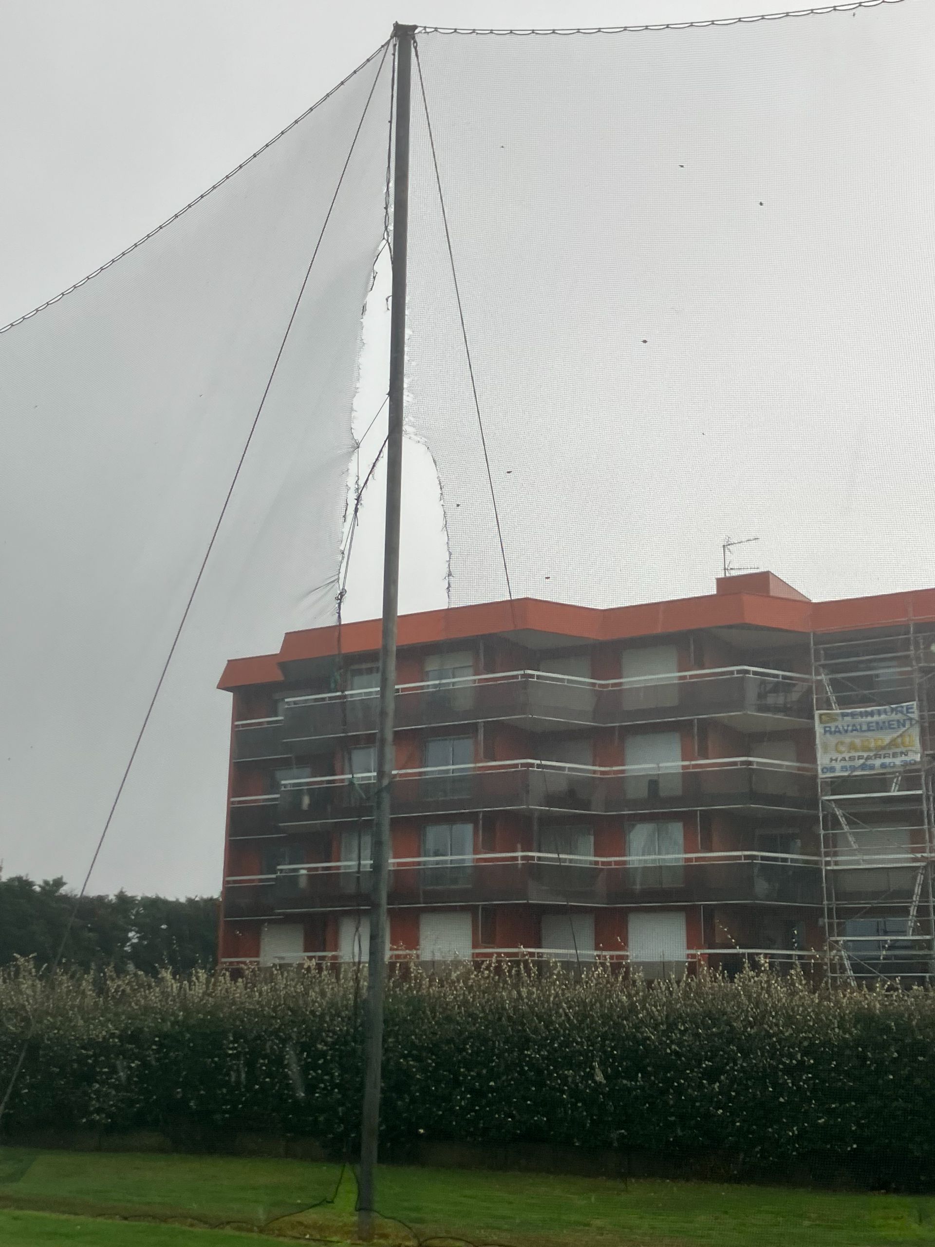 Le practice a subi également quelques dommages, poteaux pliés et filets arrachés. Les abris sont à ce jour inutilisables mais le centre de petit jeu est quant à lui complètement opérationnel. Nous avons sollicité nos assureurs et prestataires afin qu’ils procèdent aux réparations et qu’ils trouvent une solution empêchant ces désagréments dus à ces phénomènes climatiques de plus en plus fréquents.
